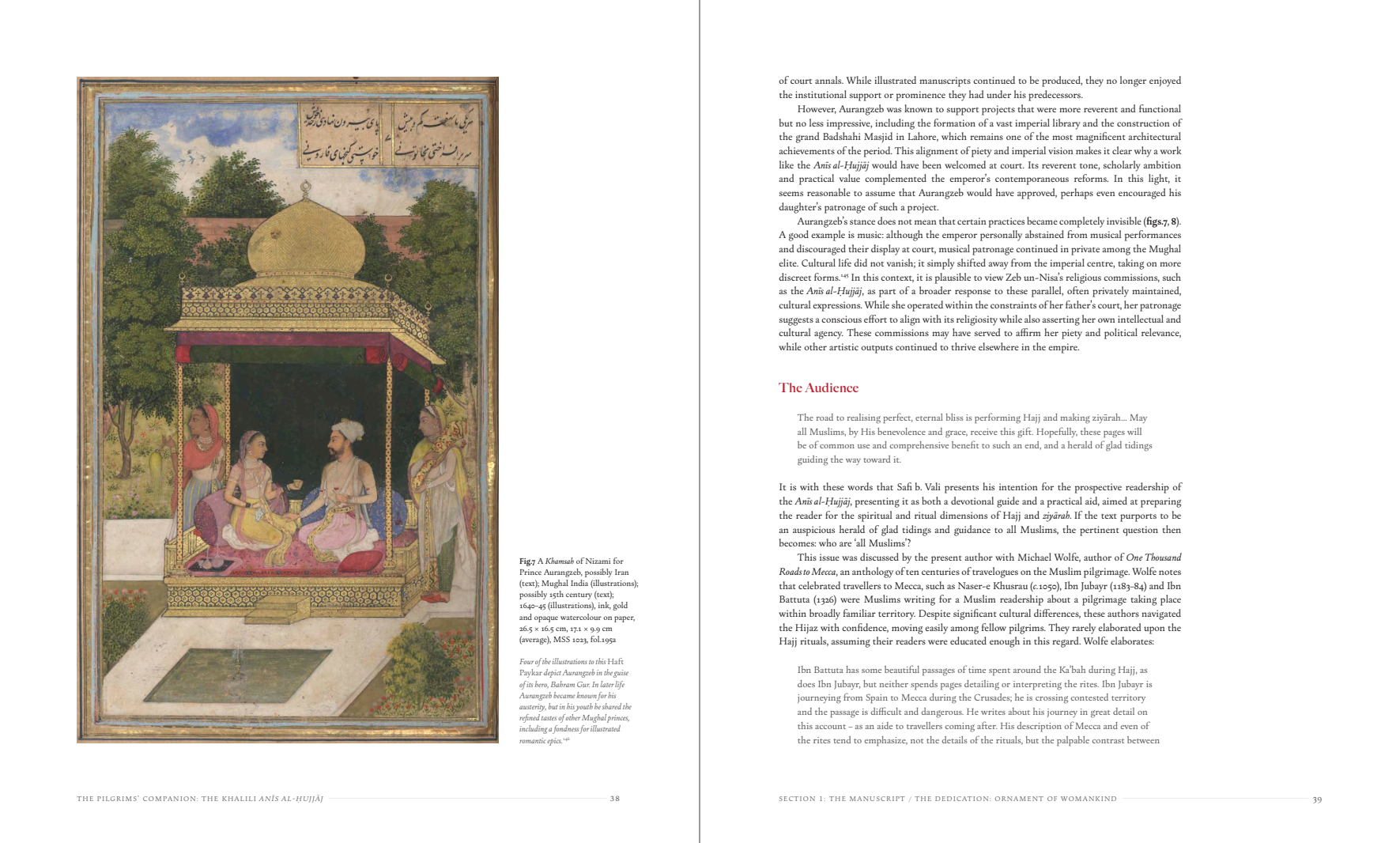 The Khalili Anīs al-Hujjāj (Pilgrims’ Companion) offers a fresh study of Safi ibn Vali Qazwini’s richly illustrated 1676–77 manuscript, recounting his year-long journey from Mughal India to Mecca and Medina. Commissioned by Zeb un-Nisa, daughter of Emperor Aurangzeb, the work belongs to a long tradition of pilgrimage guides, offering practical advice on travel, food, rituals, and places of devotion. This volume highlights the manuscript’s vivid illustrations and text, providing a unique insight into 17th-century pilgrimage, maritime travel, and the culture of the Indian Ocean world.